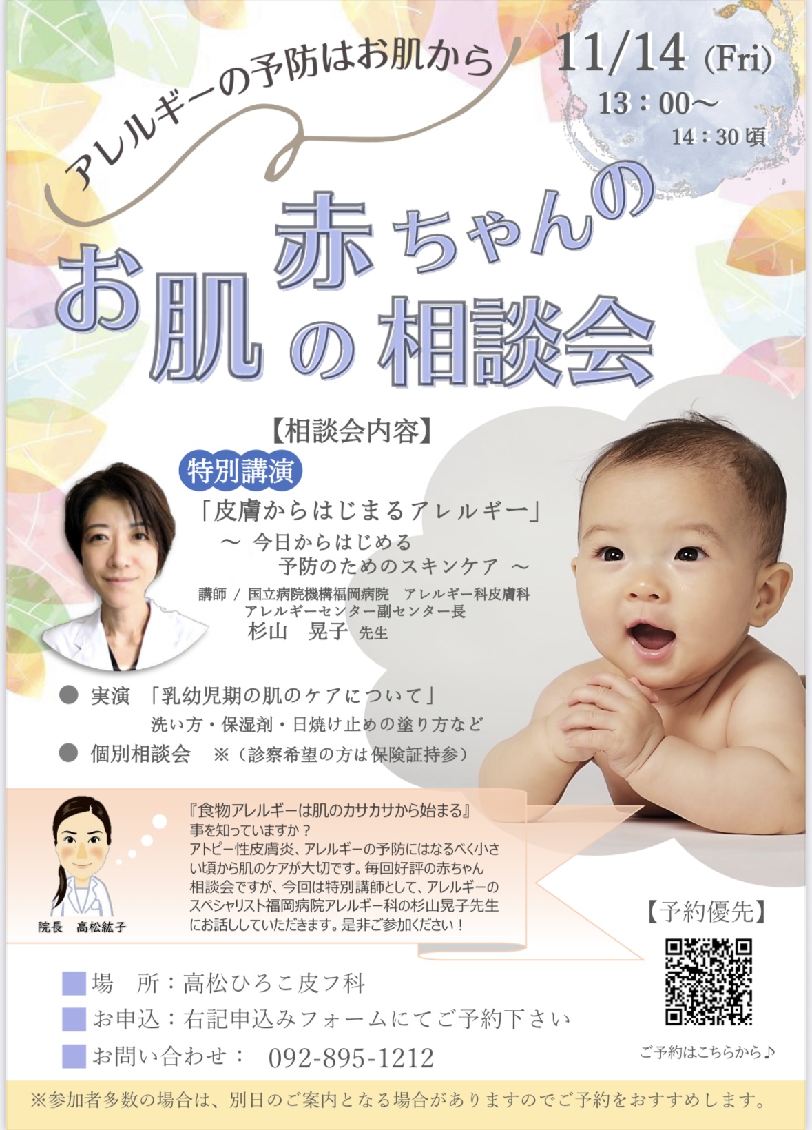 秋の赤ちゃんのお肌の相談会を、11月14日(金)に開催いたします。