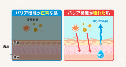 ただ、気温が下がると、皮脂の分泌量が減り、バリア機能が乱れて隙間ができ、空気の乾燥で皮膚の水分が蒸発しやすくなります。これが乾燥肌につながります。