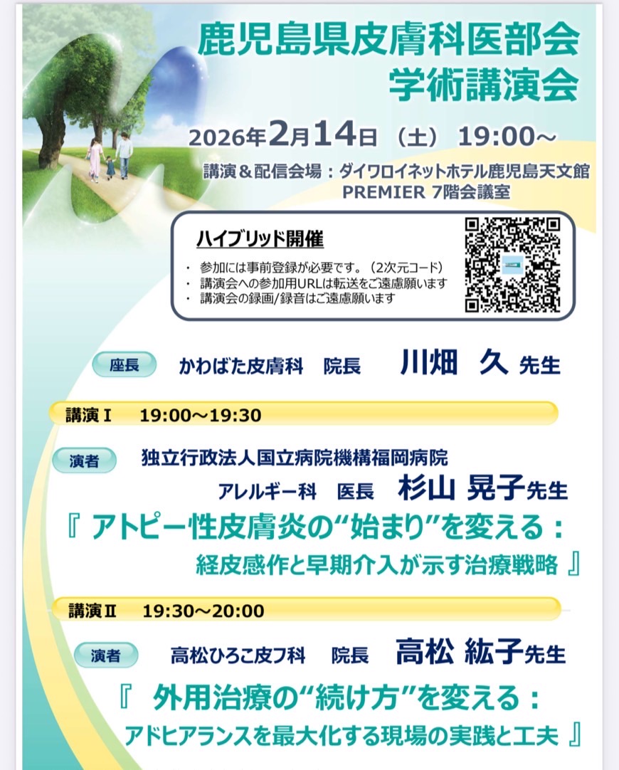 先日、鹿児島県皮膚科医部会にお招きいただき、講演させていただきました。