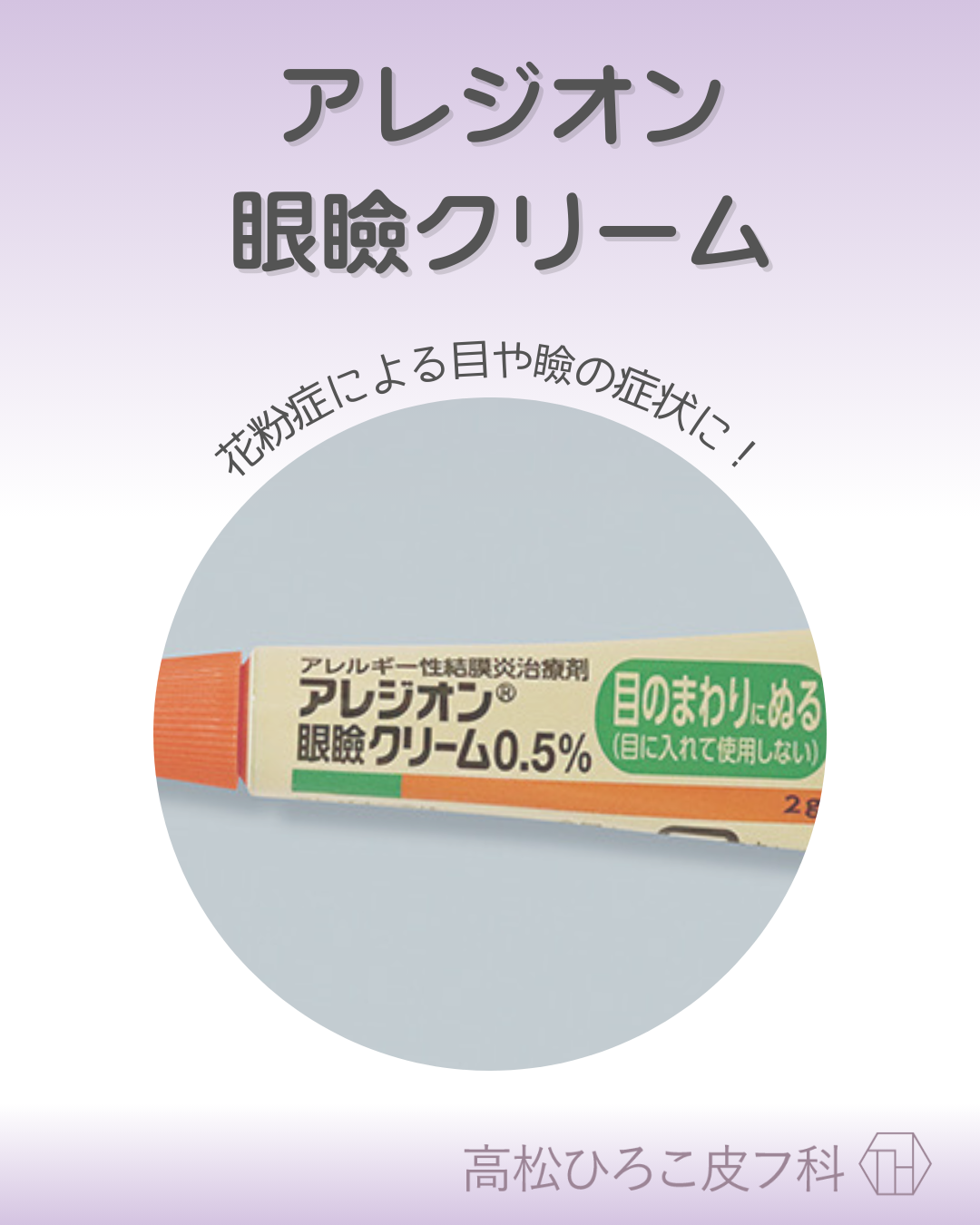 アレジオン眼瞼クリームは、1日1回、目のまわり(上下のまぶた)に塗ることでアレルギー性結膜炎を治療するお薬です。まぶたの皮膚から成分が吸収され、目の中(結膜)まで効果が届きます👁✨